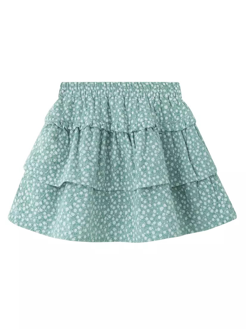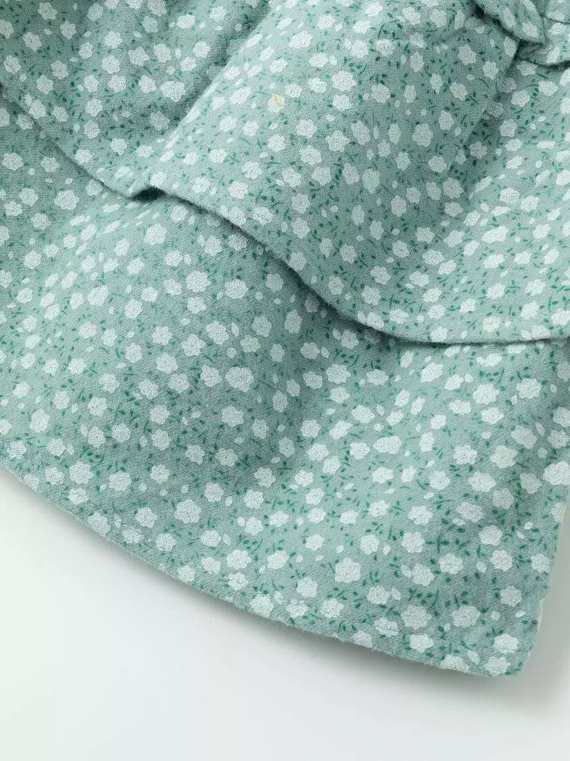Зустрічайте нову колекцію - колаборація брендів YUMSTER і NEWNESS! Фланелева коротка спідниця з рюшами - це дивовижний предмет одягу, який дарує дівчаткам можливість висловити свій стиль та почуття моди. Вона стане яскравим акцентом у гардеробі і дозволить маленькій модниці почуватися особливою. Деталі моделі: спідниця світло-зеленого кольору. Пояс на резинці. Три яруси рюшів. Довжина – вище колін. Принт - дрібна квіточка. Є білий під'юбник. Розмірний ряд: на зріст від 98 см до 134 см