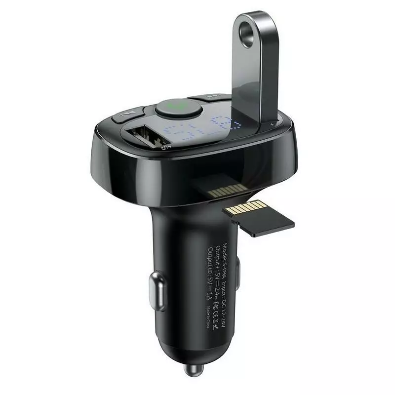 FM-трансмиттер модулятор Baseus + АЗУ T-Typed Bluetooth FM Launcher 2,4 A 2USB black (CCTM-01)