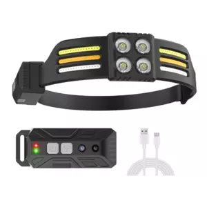 Фонарь налобный PL-173, 4*LED+3*COB, (Красный+Белый+Жёлтый), ЗУ Type-C, Сенсор