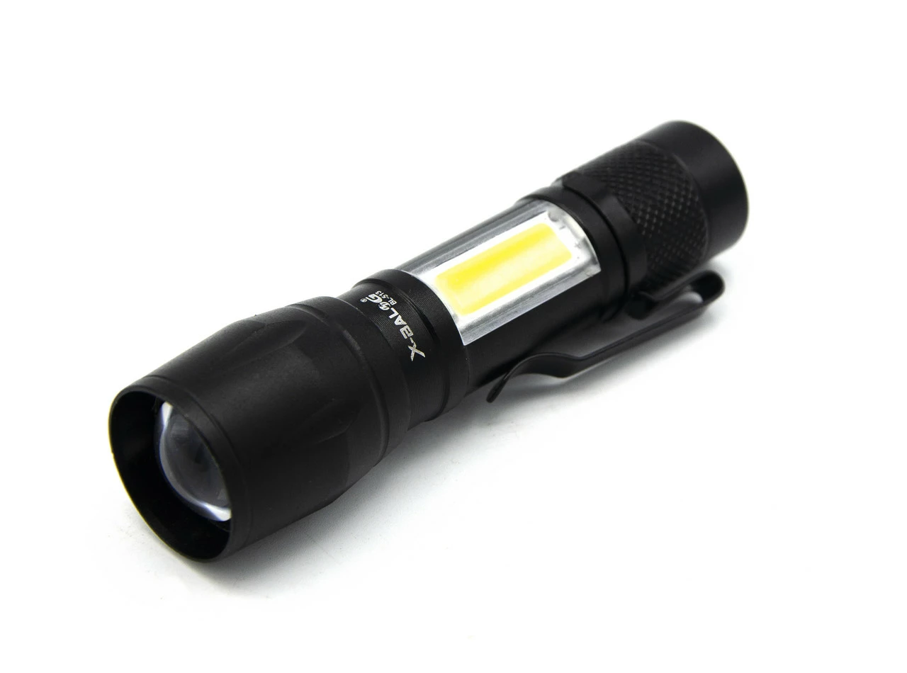 Фонарик с Zoom, дальность светового потока до 200 метров. Есть фокус ближнего и дальнего света.