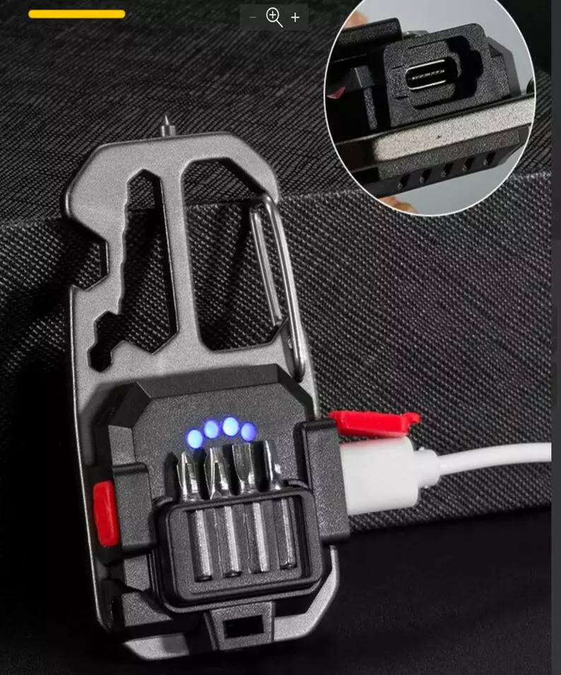 Фонарь тактический кемпинг PL412, W5137 COB (yellow+red) type-c,индикатор, карабин, мультитул