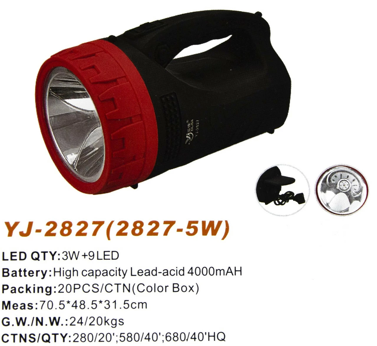 Фонарик акаммуляторный Yajia YJ-2827 3W+9 LED лучший фонарик в своем роде, 3W фронтальный LED диод, и 9 LED диодов с боку, помогут вам в быту или при ремонте автомобиля.