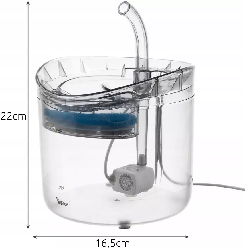 • СПЕЦИФИКАЦИИ - цвет: прозрачный; емкость: 2 л; объем чаши: 120 мл; фильтр: 3-слойный; количество режимов струи воды: 2; шум: 40 дБ; напряжение: 5 В; длина кабеля: 195 см; габариты: 16,5 х 22 см; масса: 0,488 кг; масса в упаковке: 0,597 кг
