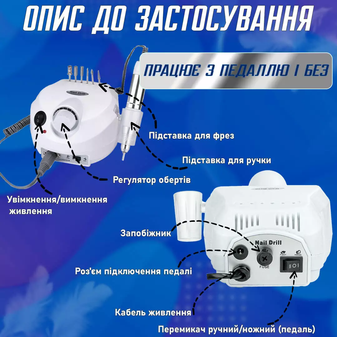 Фрезер для манікюру Nail Drill ZS 601 65 Вт 45000 об/хв