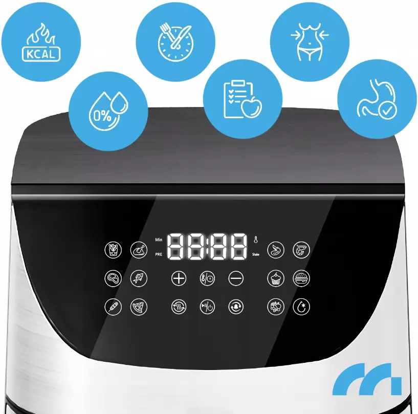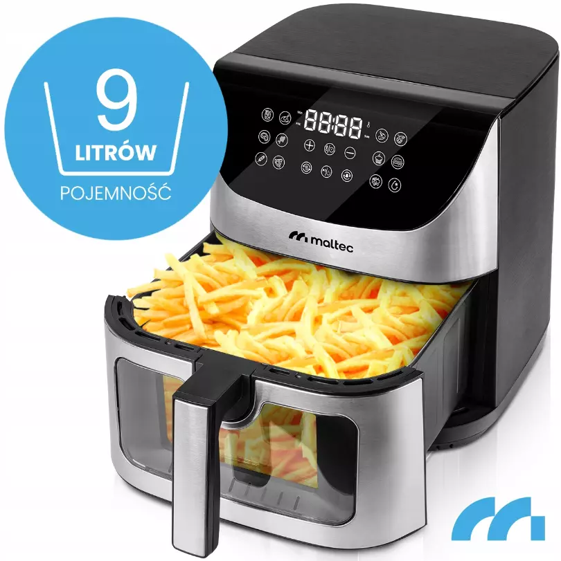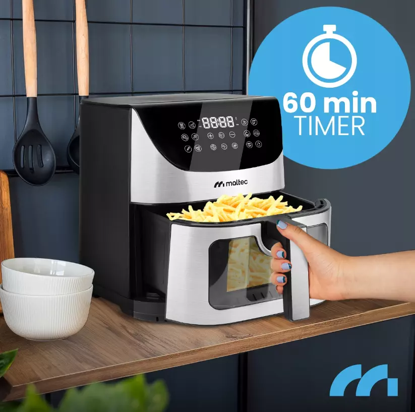 Фритюрница без жира MalTec AirFryer1800W-9L - это здоровый способ приготовления легкой и вкусной пищи. Благодаря технологии высокоскоростной циркуляции горячего воздуха прибор позволяет жарить чипсы, курицу, рыбу, овощи и даже выпекать пироги без использования масла.