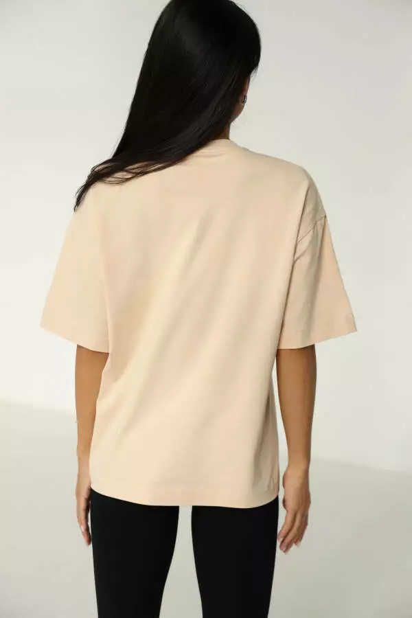 Жіноча базова футболка з бавовни оверсайз German Volf Нюдовий S(42) 23162
