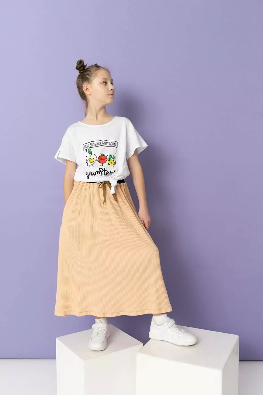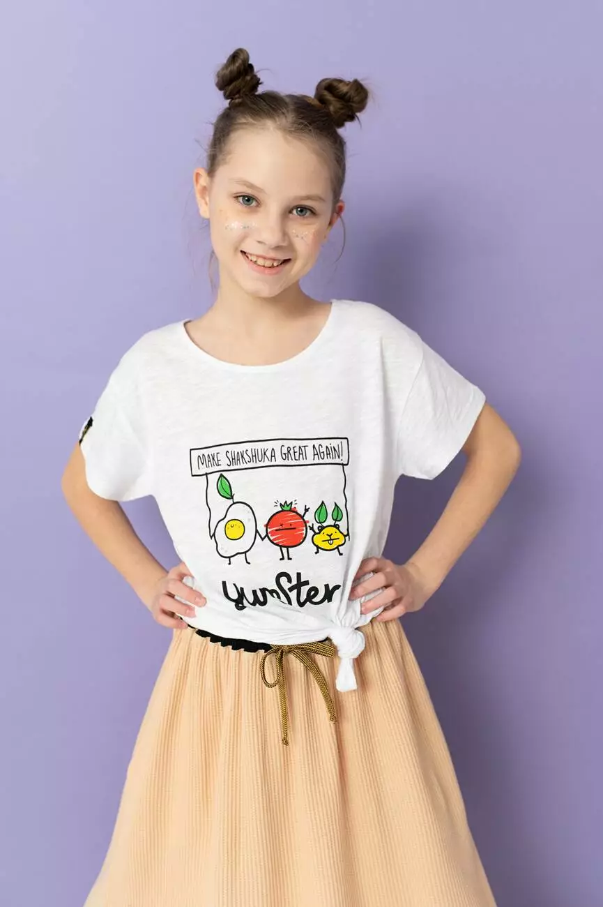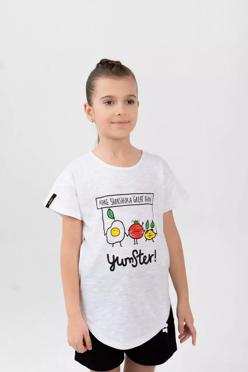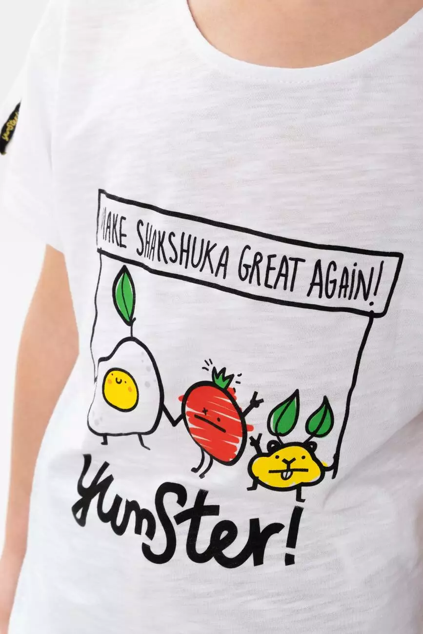 Біла дитяча футболка з фірмовим принтом Shakshuka. Відмінний
