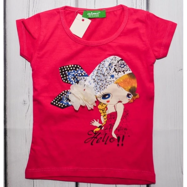 Модний дитячий футболка для дівчинки з принтом від турецького виробника.