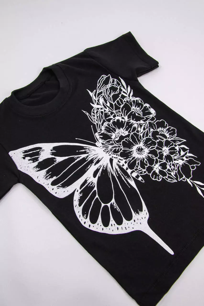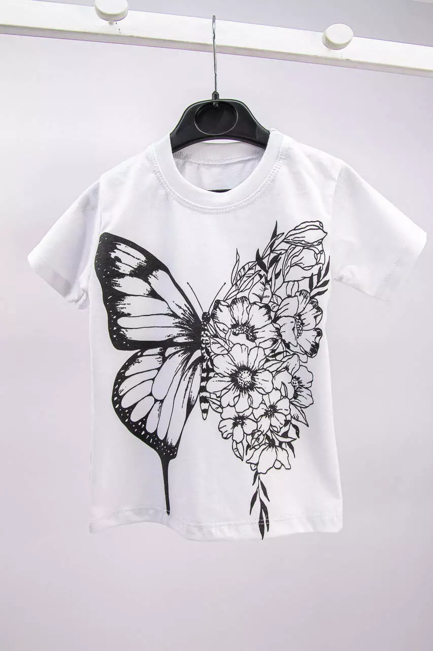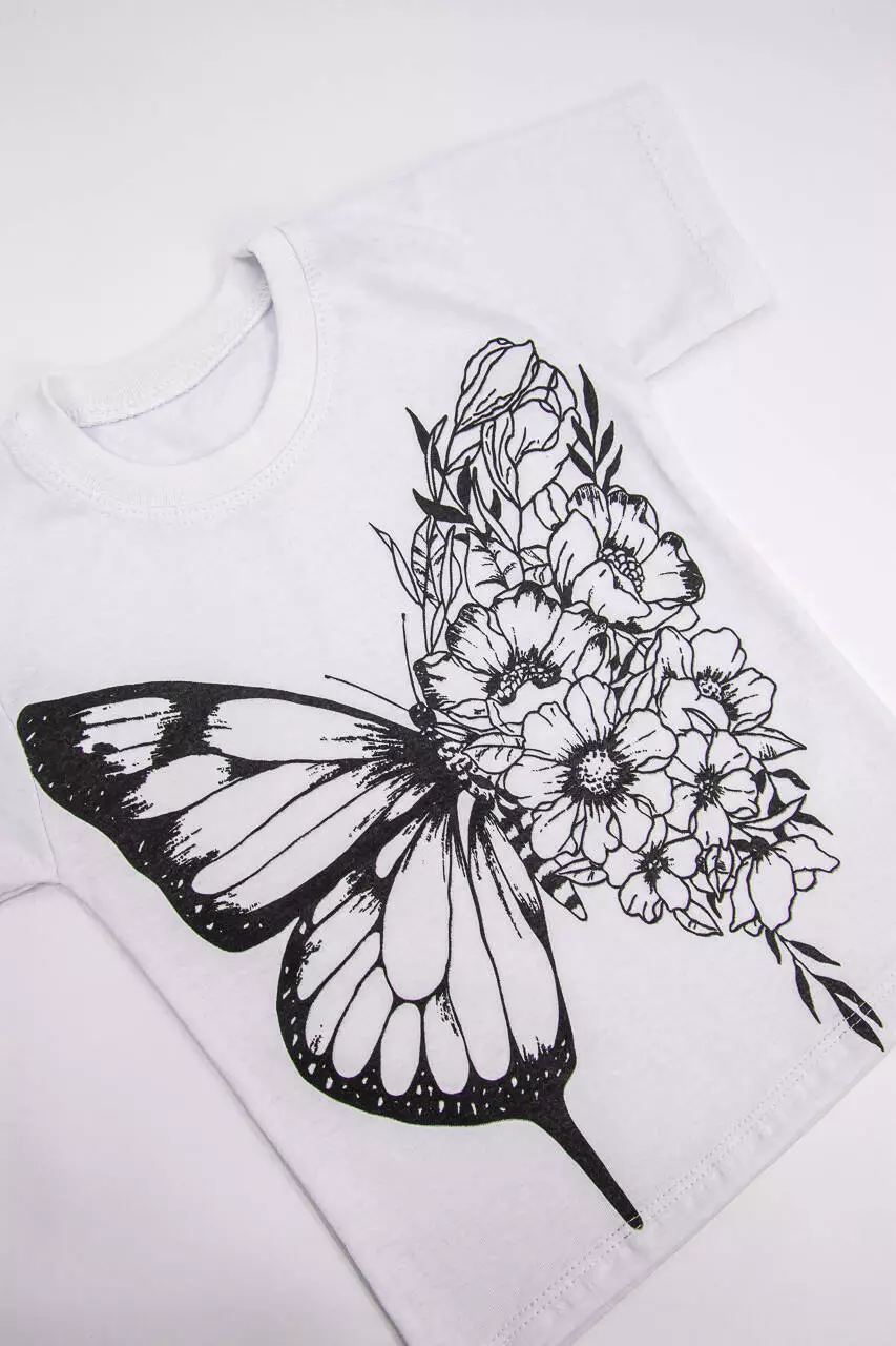 Футболка для девочки Бабочка кулир (состав):Легкое, мягкое, приятное к телу гипоаллергенное полотно пошито из приятных для детской кожи ткани: кулир.