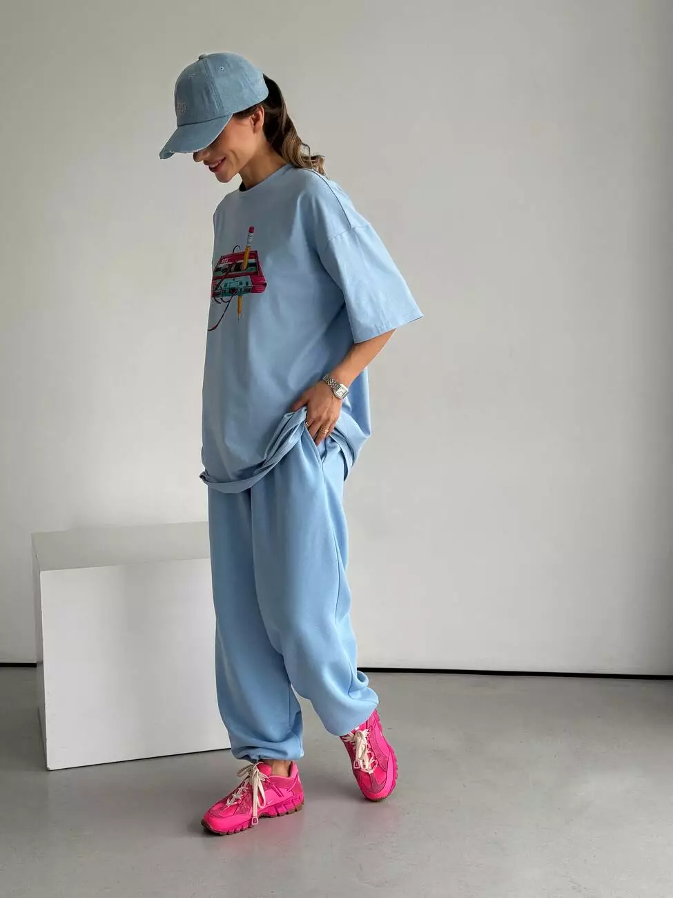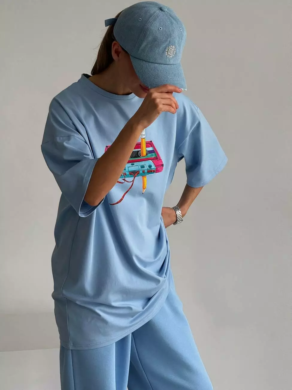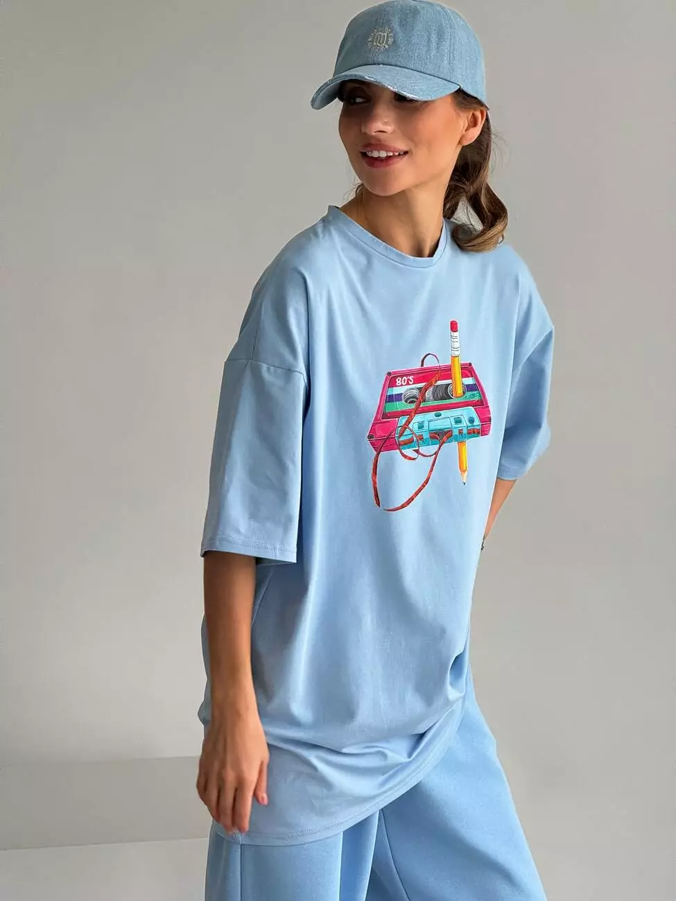 Широка футболка формат “over size” зі стильним принтом у вигляді касети.