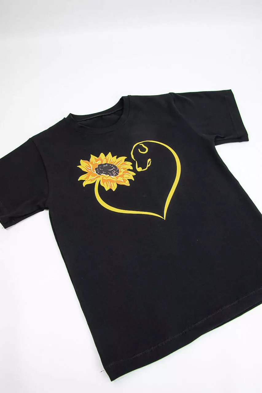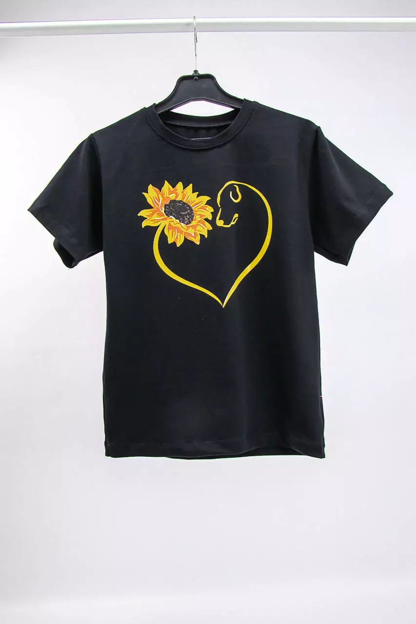 Однотонная футболка для девочки с принтом. Выполнена из тонкого,