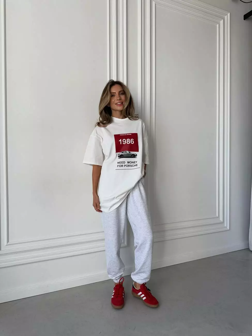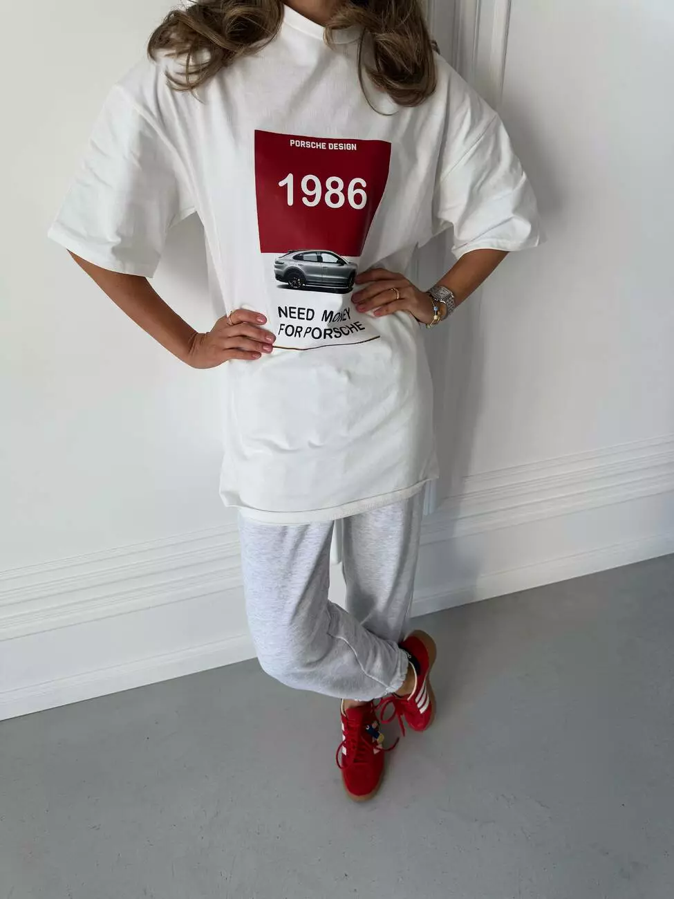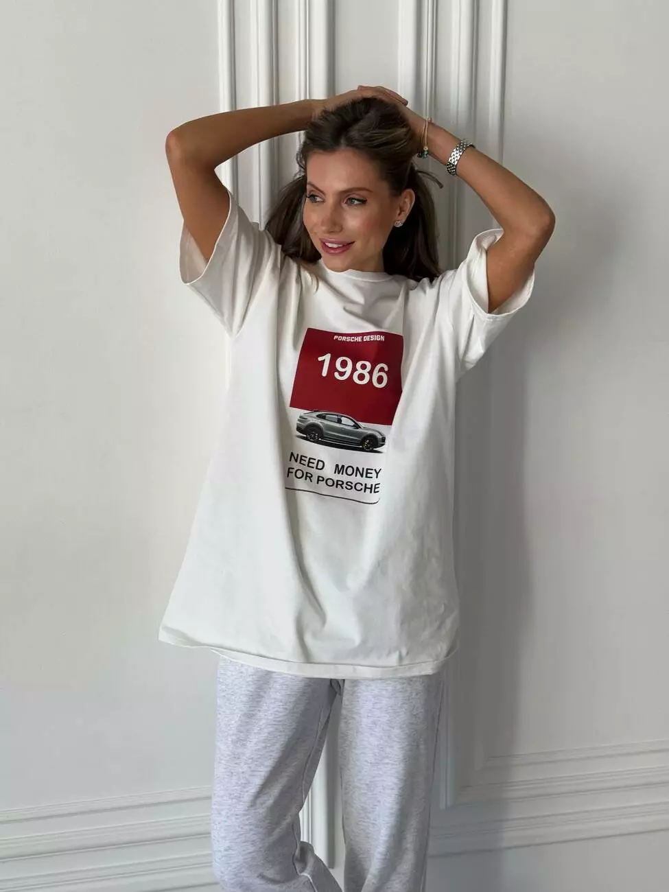 Широка футболка формат “over size” зі стильним принтом у вигляді порше.