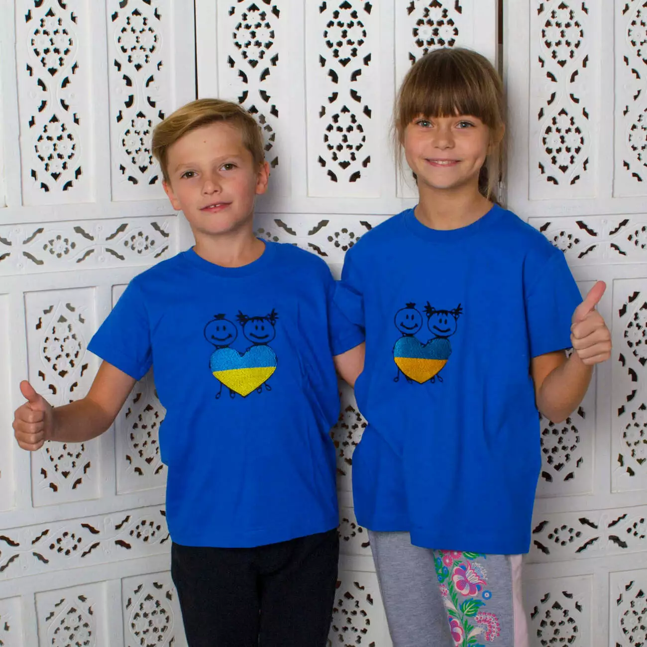 Дитяча футболка із вишитим синьо-жовтим серцем на синьому тлі від гуртівні Leosouvenir чудово пасуватиме Вашій малечі.