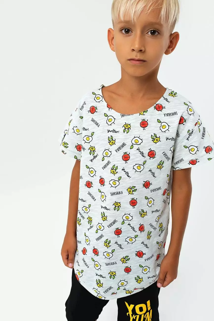 Стильна дитяча футболка з фірмовим принтом і круглою горловиною. Для хлопчиків від 5 до 15 років.