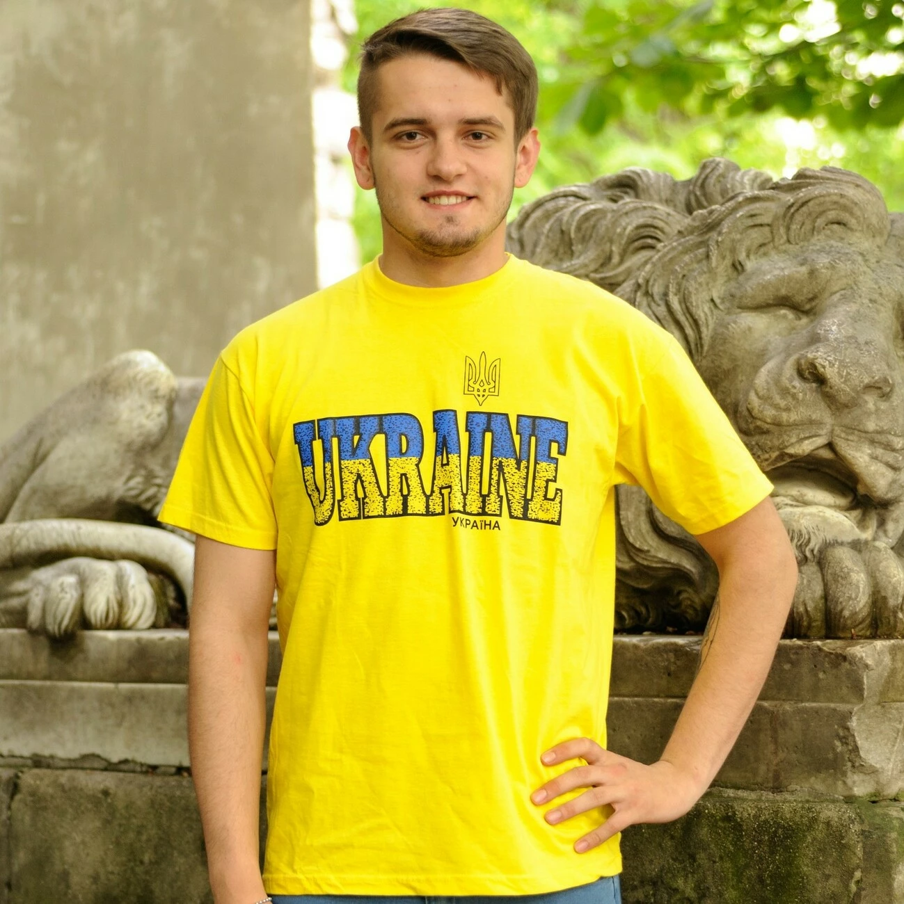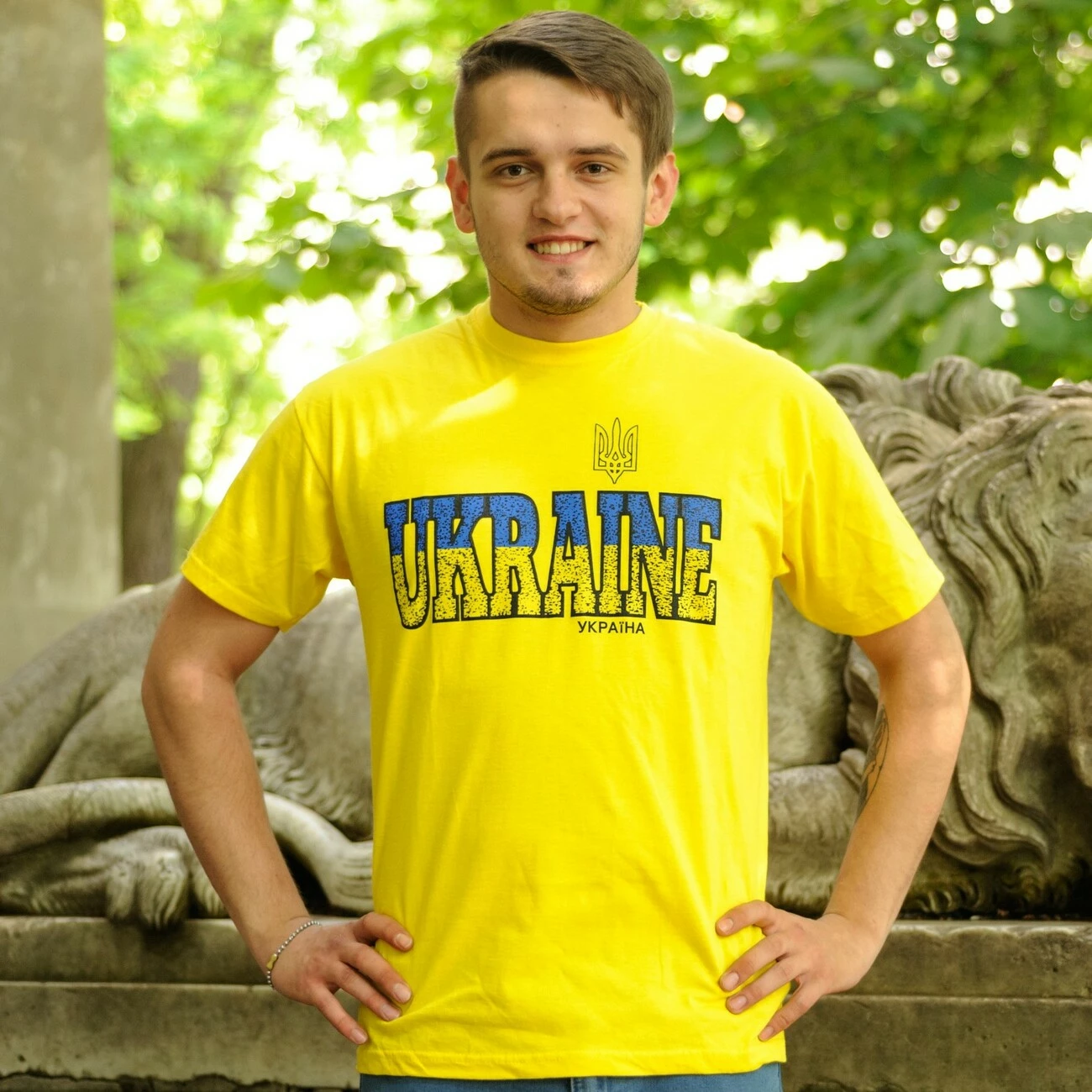 Чоловіча футболка із патріотичним принтованим надписом на кольоровому тлі від гуртівні Leosouvenir зробить Вас справжнім Українцем.