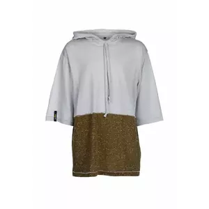 Деталі: Футболка сіро-зеленого кольору. Блокове забарвлення. Рукав ½. Вільний крій. Капюшон на шнурку.