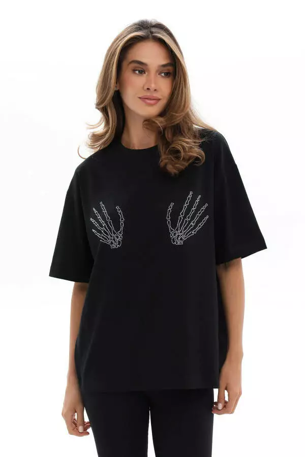 Футболка жіноча базова з аплікацією руки зі страз German Volf чорний XL-2XL (48-50) 25053