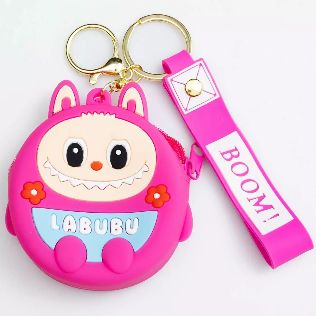 Гаманець-брелок Лабубу силіконовий на блискавці 7,5*7*2,5 см, малиновий