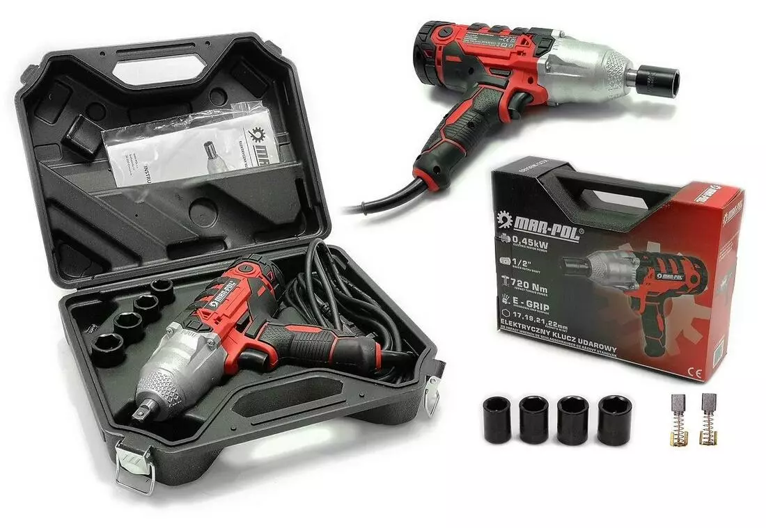Гайковерт електричний для коліс, крутний момент 720Nm. Друге покоління ключа створене для користувача. Нова ударна система, зовнішній вигляд, дизайн, кожен елемент був розроблений заново. Перемикач ходу вправо/ліворуч розташований відразу над пальцями, що дозволяє змінювати обертання без другої руки. Така система зміни напрямку обертання успішно використовується в акумуляторних викрутках. Шток 1/2" чотирикутник. Рукоятка та частина корпусу, що протиковзають з гумовим покриттям. Вигідне розташування центру ваги завдяки ручці на середині електроінструменту забезпечує спокійну роботу без напруги. Ключ поставляється в практичній валізці.