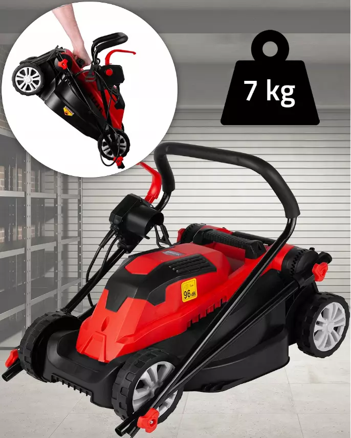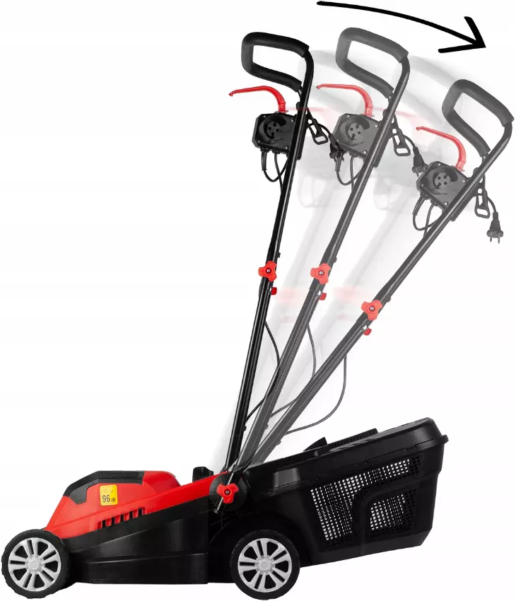 Косилка оснащена очень удобной складной ручкой. Это решение делает устройство очень мобильным. Когда ручка сложена, устройство можно легко положить в багажник и отвезти, например, на участок.
