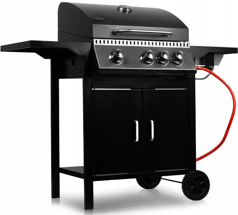 ◾ 4 МОЩНЫЕ ГОРЕЛКИ ◾ БОЛЬШАЯ ХРОМИРОВАННАЯ РЕШЕТКА ◾ БЕЗДЫМНАЯ ◾ ШКАФ ДЛЯ АКСЕССУАРОВ ◾ ДОПОЛНИТЕЛЬНАЯ ПОЛКА ◾ КОЛЕСА ◾ ТЕРМОМЕТР ◾