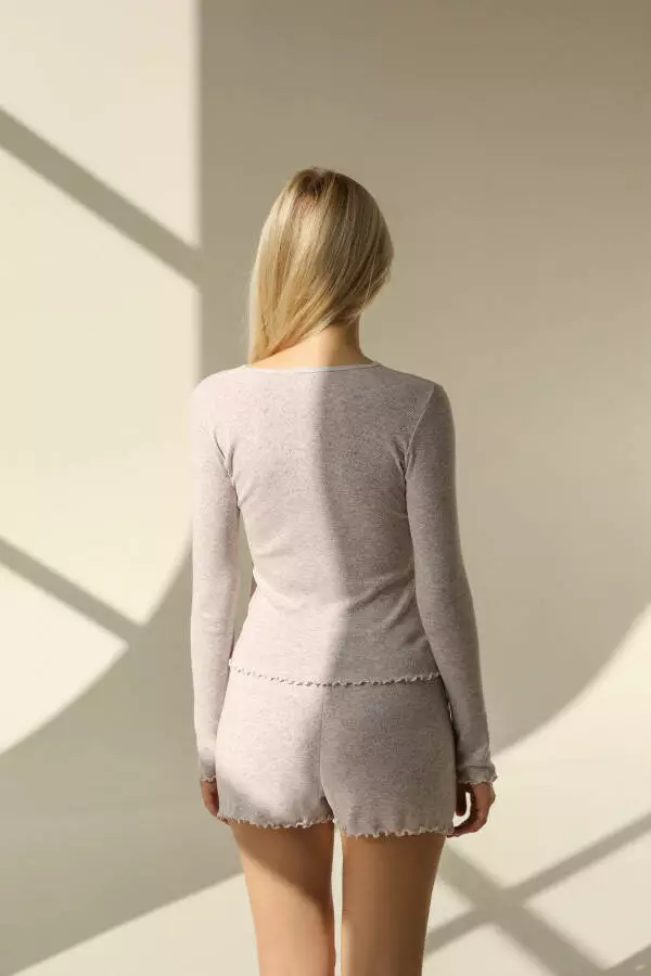 Жіночі шорти з ажурного трикотажу – це елегантний та зручний вибір для літнього гардеробу. Вони мають цікавий візерунок у вигляді сердець, що надає їм неповторного шарму. Кавововий меланж надає їм жіночності та ніжності. Ці шорти стануть чудовим доповненням до вашого домашнього образу.