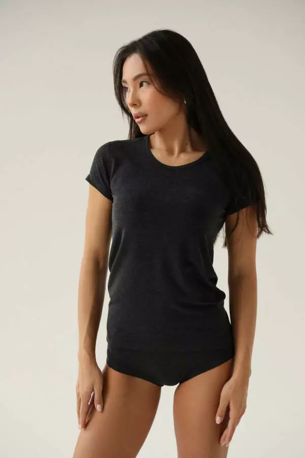 Жіноча термофутболка, колір темно-сірий — це ідеальний елемент гардеробу для холодної пори року, який забезпечує тепло та комфорт у будь-яких умовах. Виготовлена ​​з високоякісного термоактивного матеріалу, ця футболка ефективно зберігає тепло, підтримуючи оптимальну температуру тіла навіть у холодну погоду. Темно-сірий колір додає виробу стиль та універсальність, дозволяючи легко поєднувати його з іншим одягом.