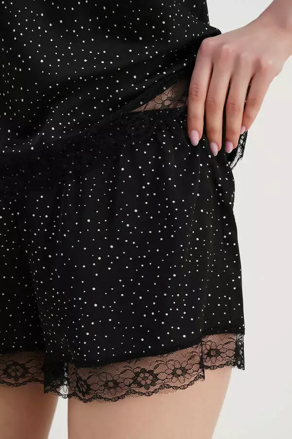 Комплект шовковий жіночий топ та шорти з мереживом German Volf Чорний у білий горох XS(40) 23184