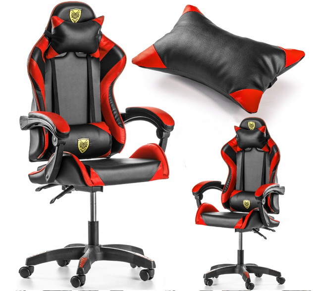 Сучасний дизайн та комфорт ідеально характеризують ігрове крісло. Форма сидіння ідеальна для любителів комп'ютерних ігор, під час захоплюючих та тривалих ігор, а також для людей, які проводять багато годин перед комп'ютером чи письмовим столом. Спеціальний профіль робить сидіння в кріслі винятково комфортним, а втома не така помітна, як у випадку зі звичайними, найпростішими моделями крісел. Це дає нам ідеальне прилягання до тіла та, отже, комфорт під час використання. Поперекова подушка має функцію масажу, яка дозволить вам розслабитись на роботі або у вільний час.