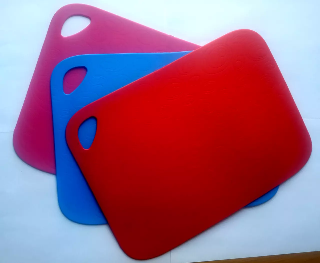 На пластиковой гибкой прямоугольной кухонной досочке-коврике