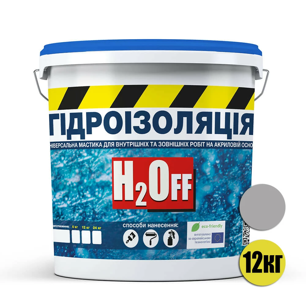 Гидроизоляция универсальная акриловая краска мастика H2Off Серая 12 кг