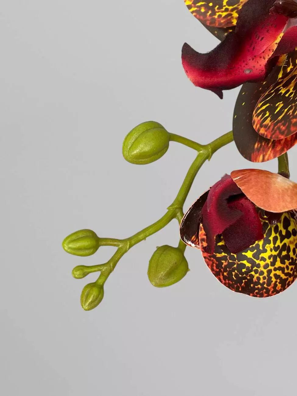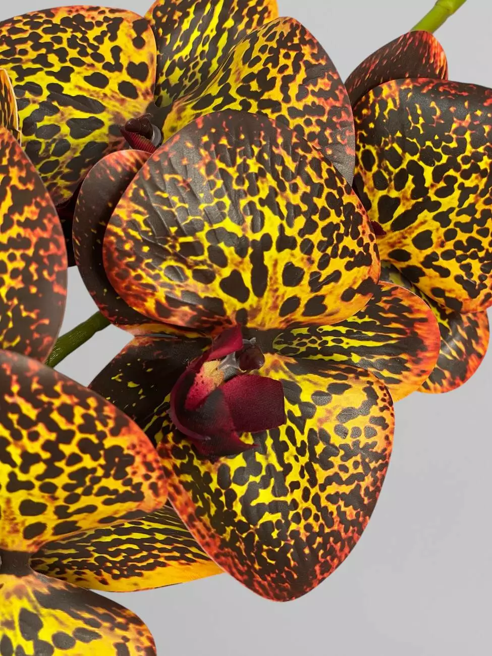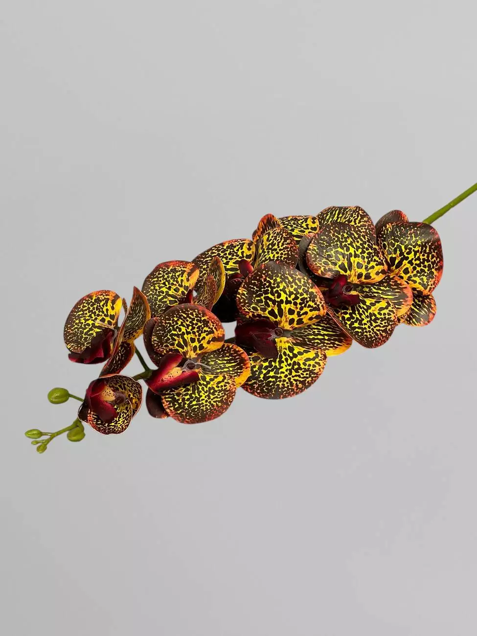 Гілка орхідеї штучна на 9 суцвіть, тигрово-помаранчевий, 95 см