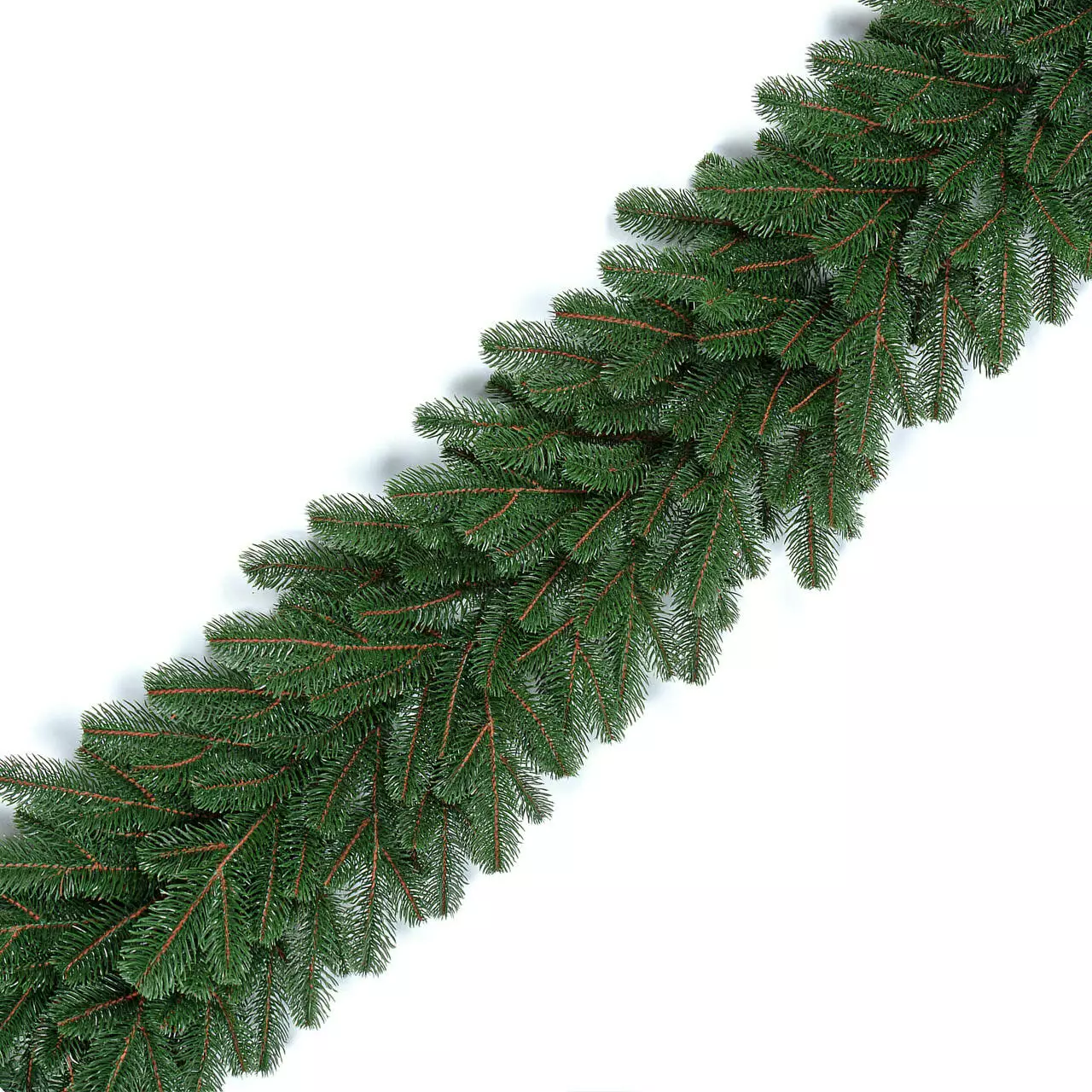 Хвойна гірлянда виготовлена шляхом переплетення штучних гілочок ялинки. Всі гілки і голочки - 100% литі, вони виглядають, як хвоя живої ялинки, але м'якші і не колючі.