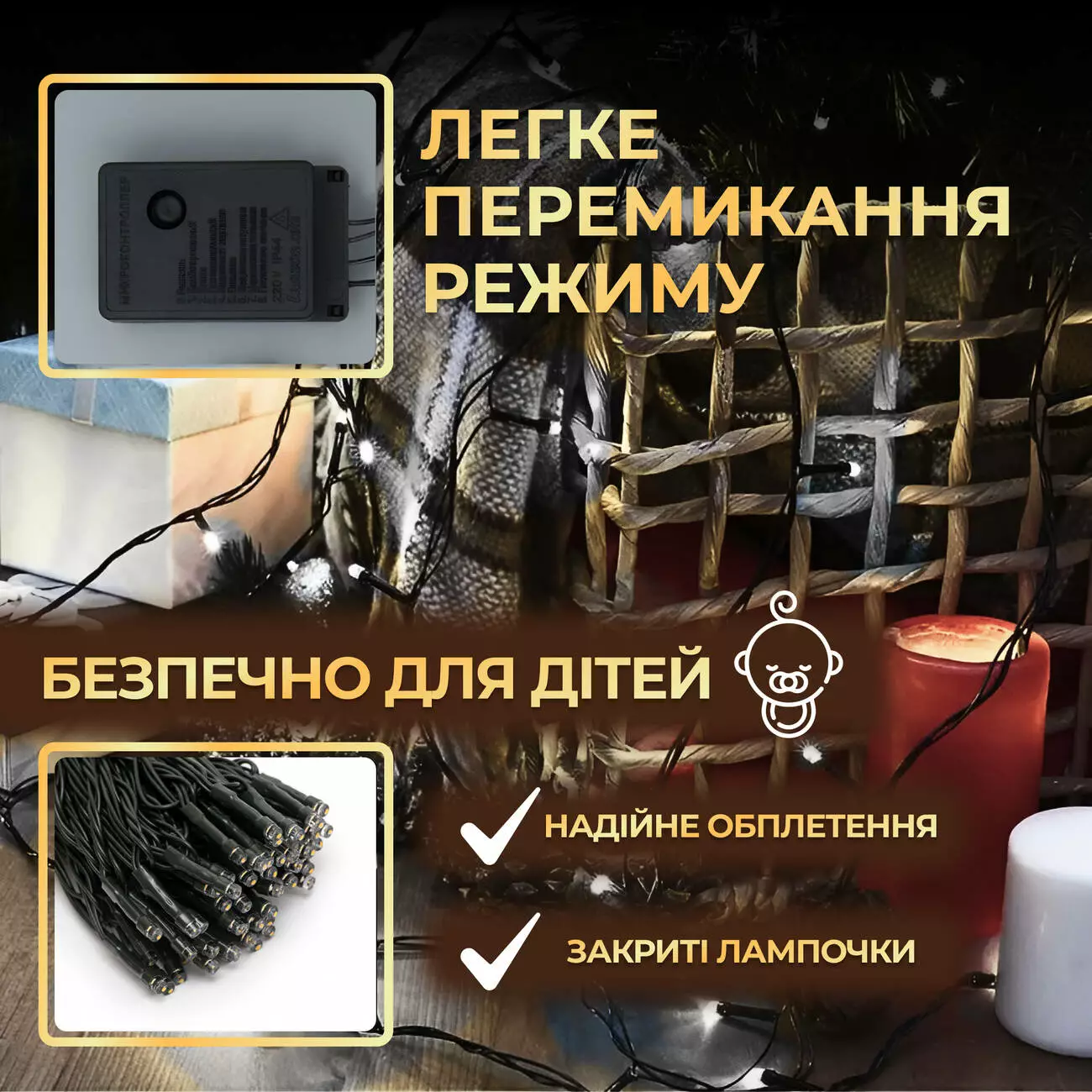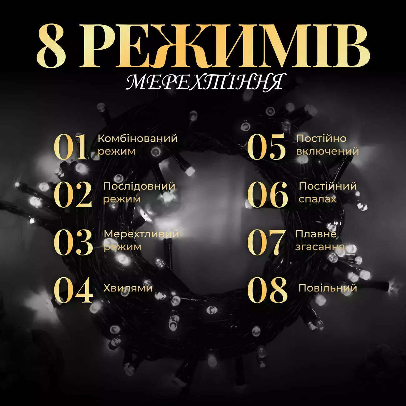 Світлодіодна гірлянда Нитка (String Light) відноситься до найбільш поширених гірлянд завдяки універсальності застосування. Ними можна декорувати все, що завгодно: від новорічної ялинки до поручнів на сходах або веранди. Така гірлянда чудово підходить для втілення в життя різноманітних креативних дизайнерських рішень та створення по-справжньому святкової атмосфери завдяки кільком режимам роботи, які можна перемикати за допомогою контролера.