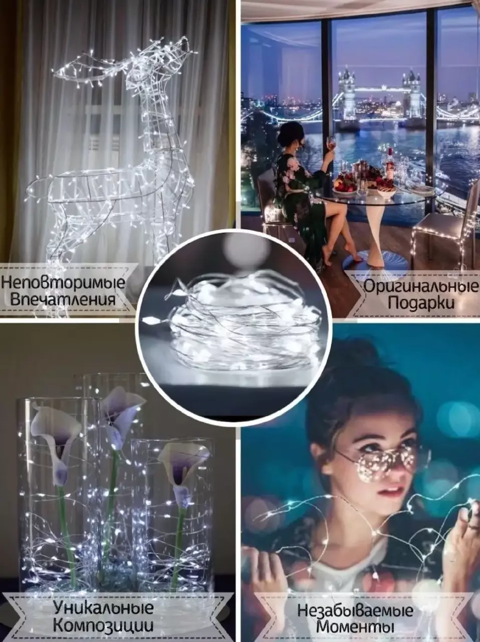 • Эстетика в деталях: Прозрачная проволока гирлянды не нарушает внешний вид интерьера или экстерьера, сохраняя стиль и эстетику вашего пространства