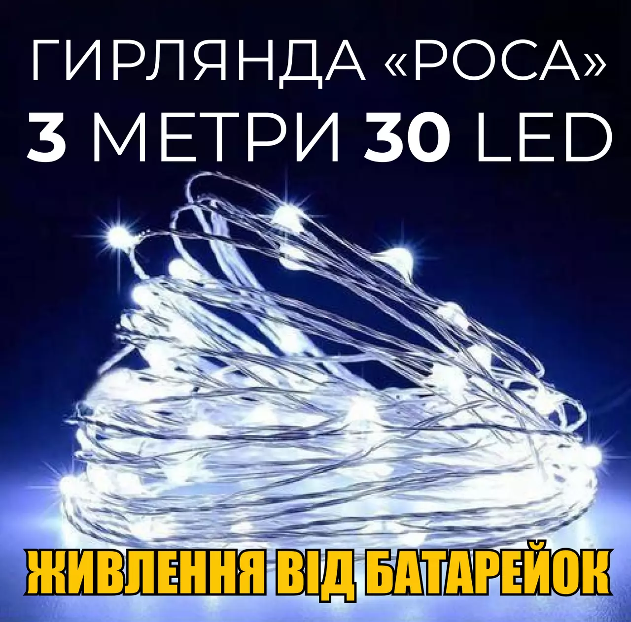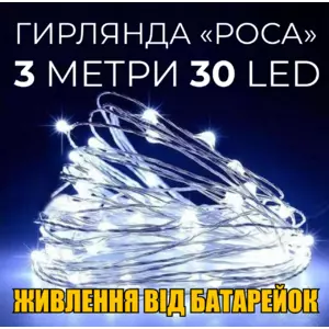 Гирлянда "РОССА" 30 LED ламп 3 метра на батарейках с умным контроллером и тремя режимами света (холодный