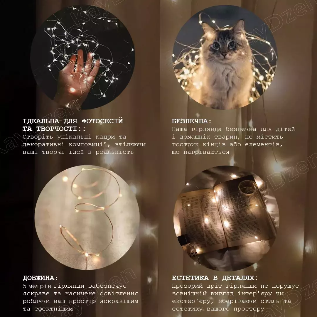 • Эстетика в деталях: Прозрачная проволока гирлянды не нарушает внешний вид интерьера или экстерьера, сохраняя стиль и эстетику вашего пространства