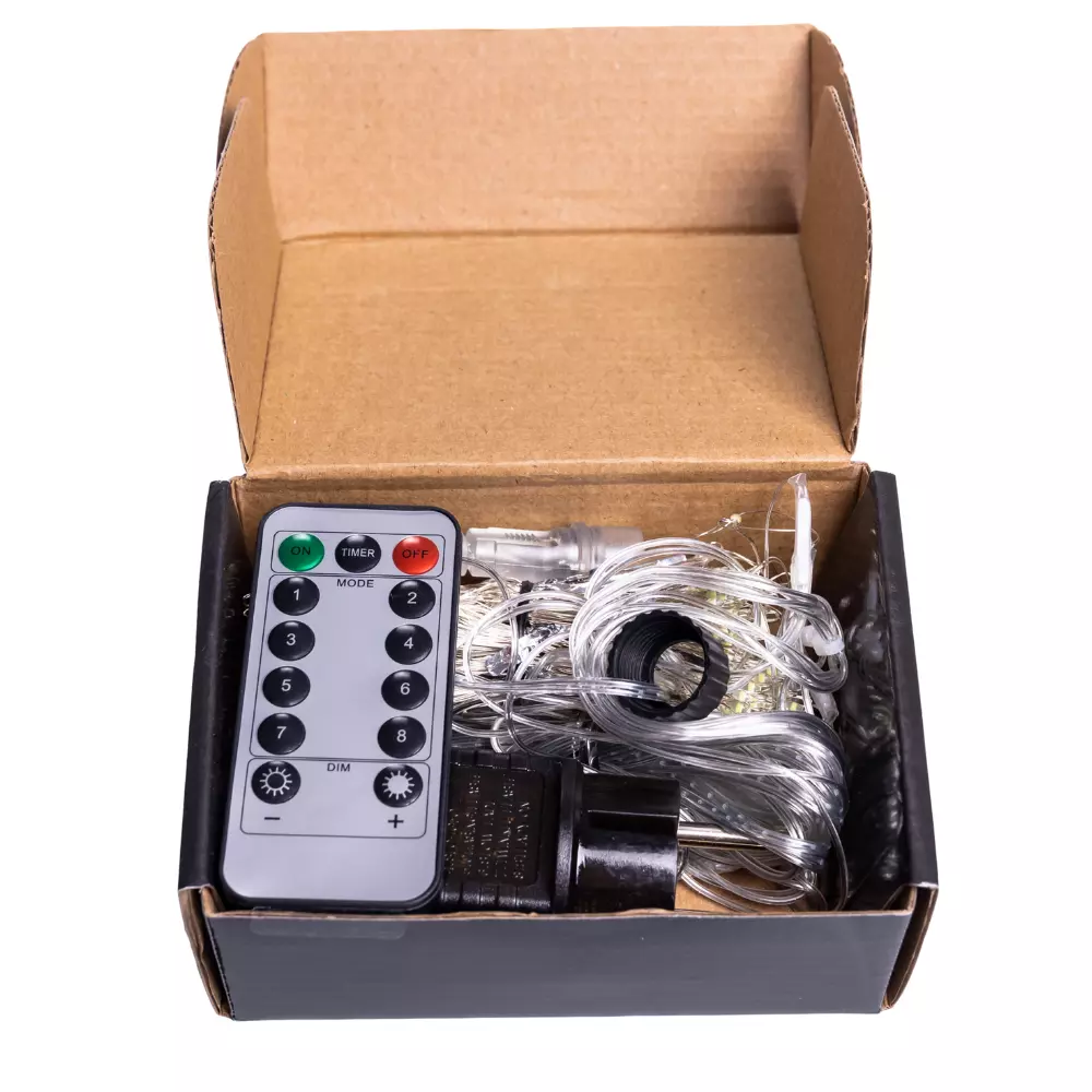 Гірлянда-штора хвойна лапа створює м’яке тепле світло, яке додає простору чарівності та святкового затишку. Завдяки формі хвойної лапи вона гармонійно вписується в інтер’єр та стає ефектним елементом новорічного або зимового декору. Такий варіант освітлення підходить для прикрашання вікон, арок, вітрин або стін, створюючи атмосферу свята як у домі, так і в комерційних приміщеннях.