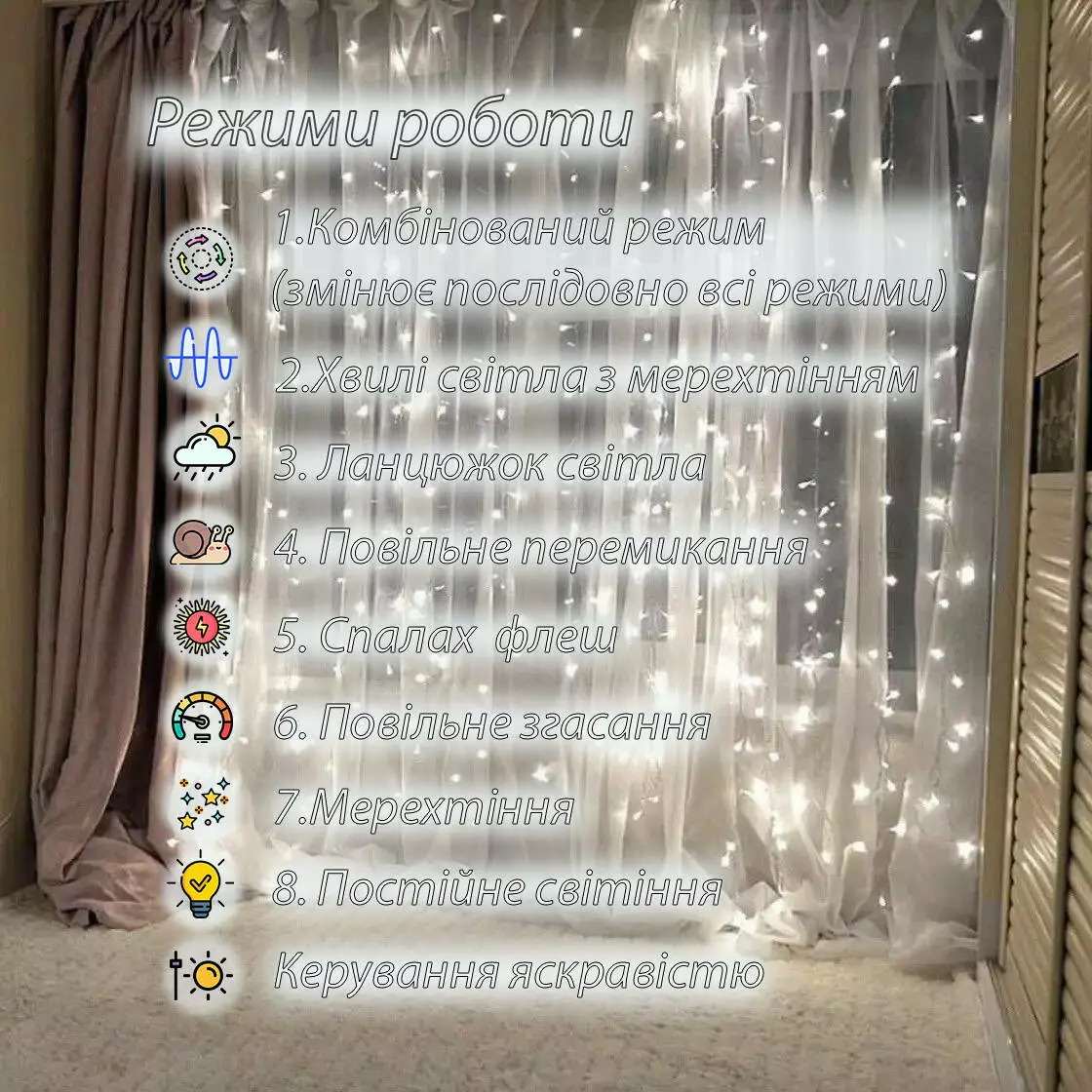 Гирлянда штора Foyu FO-F02 - не просто освещение, это искусство создания уюта и тепла в вашем доме. Погрузитесь в атмосферу эстетики сейчас, заказав у нас этот товар по скидочной цене!
