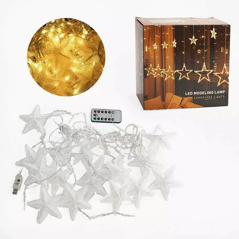 Гірлянда C 61482-70 Y (36) "Зірки", 5.7 метрів, жовте світло, від USB, 8 режимів, у коробці