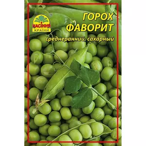 Фаворит - сахарный среднеранний сорт гороха. Вегетационный период от всходов до технической спелости 60-70 дней. Стручки длиной около 8 см, широкие, зеленого цвета, содержат 8-9 крупных горошин, прекрасных вкусовых качеств. Стебли мощные, высотой 80-100 см. Сорт устойчив к фузариозу и мучнистой росе, отличается стабильной урожайностью. Рекомендуется для потребления в свежем виде, замораживания и консервирования.