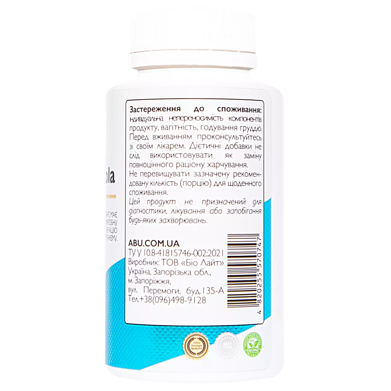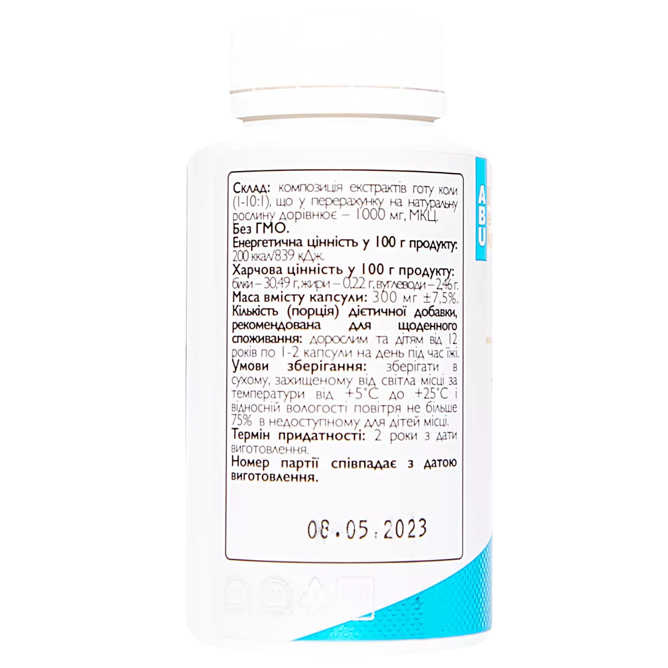 Gotu kola (центелла азіатська) – це трава, яку традиційно використовують в аюрведичній медицині для підтримки здоров'я мозку і нервової системи, а також шкіри і сполучної тканини. Її основним активним інгредієнтом є терпеноїди і сапоніни. Композиція екстрактів Gotu kola в кожній капсулі містить еквівалент 1000 мг натуральної рослинної сировини.
