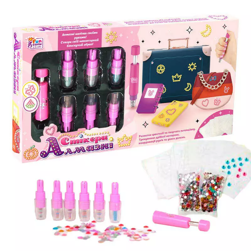 гр Алмазні стікери 87548 (18) "4FUN Game Club", ручка зі змінними блоками, стрази, шаблони, у коробці
