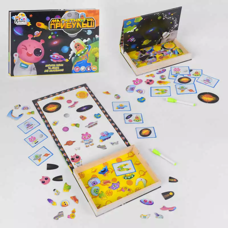Home > Catalog > Toys > Educational toys > гр Дерев`яна магнітна дошка "Космічні прибульці" 18094 (12) "4FUN Game Club Wood", 68 елементів, пазли, маркер, українською мовою, в коробці wholesale