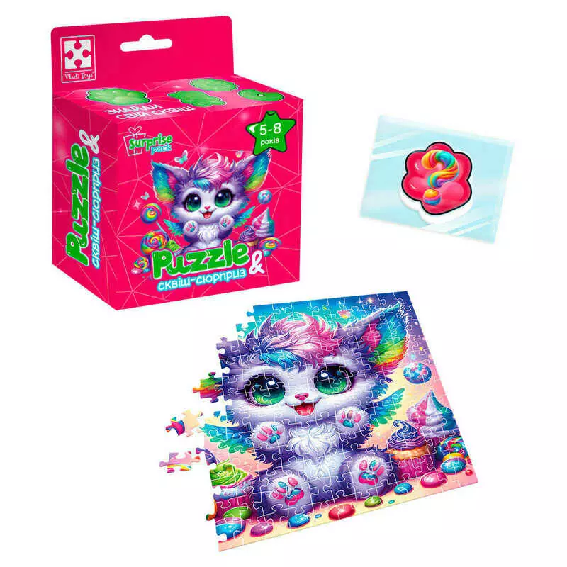 гр Гра розвиваюча пазли із сюрпризом "Кольорове кошеня" VT8030-12 (20) "Vladi Toys", 180 елементів, сквіш-сюрприз, в коробці