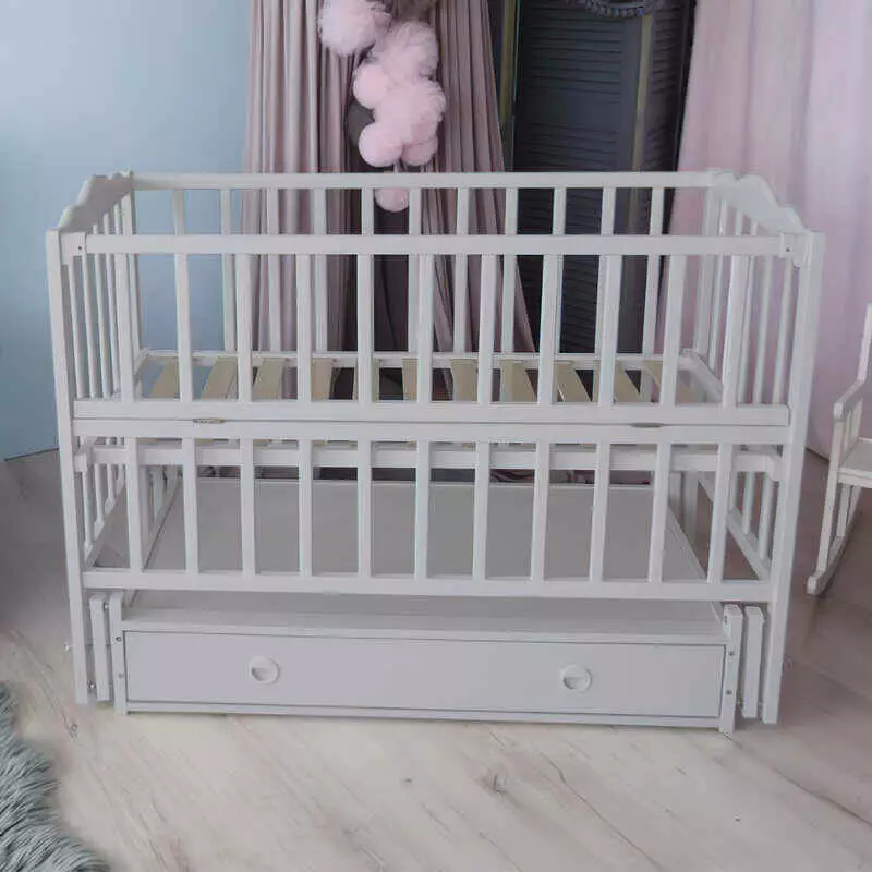 гр Ліжечко дитяче "Анастасія" (1) шарнір-підшибник з відкидною боковиною+шухляда, бук (сірий)