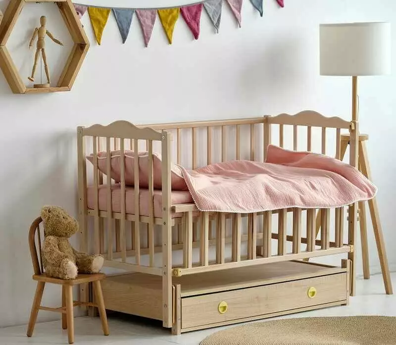 гр Ліжечко дитяче ""Ангеліна"" (1) шарнір-підшипник з відкидною боковиною+шухляда, бук (натуральна)