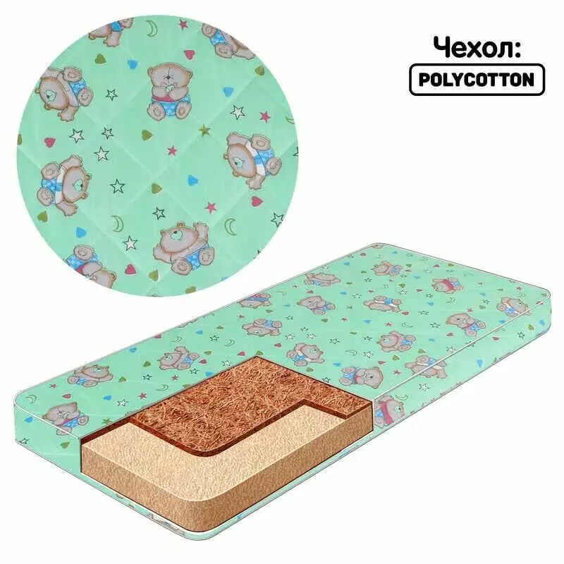 гр Матрас дит. ортоп. "Малятко-2" 11122231 полікотон 601207 см. "Мишки в восторге" - колір зелений (1) "Homefort"