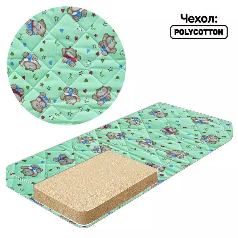 гр Матрац дитячий ортоп. "Малятко-3" 12112312 поролон - полікоттон, 601206 см., колір зелений "Ведмедик у захваті" (1) "Homefort"