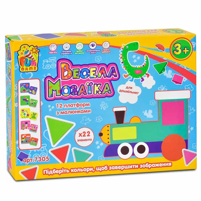 гр Мозаїка 7305 ""Весела Мозаїка"" (12) 22 різнокольорових елемента, 12 платформ з малюнками, ""4FUN Game Club"", в коробці